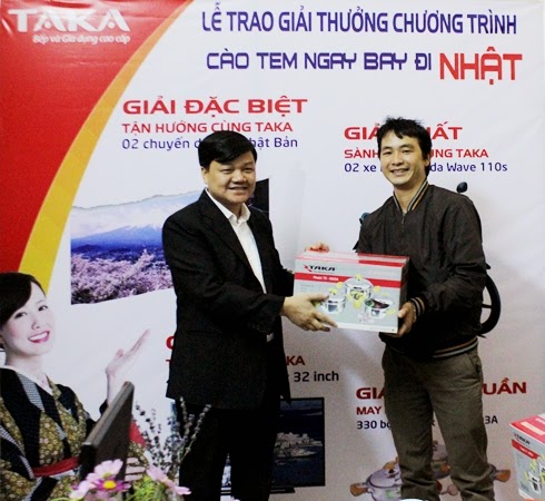 Sáng ngày 13/12/2014, tại trụ sở chính Công ty TNHH Taka Việt Nam đã long trọng tổ chức lễ trao giải tuần cho các khách hàng may mắn trúng giải thưởng tuần 1 trong chương trình khuyến mãi “Cào tem ngay – Bay đi Nhật”. Chương trình trình trao giải được phát sóng trực tiếp trên kênh Youtube của Taka Việt Nam.
