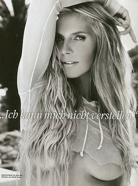 Vẫn rất gợi cảm dù đã là bà mẹ của 3 mặt con, Heidi Klum chưa bao giờ thôi khiến người ta phải rung động khi nhìn thấy cô. Năm 2009, Klum xuất hiện với một loạt hình ảnh rất sexy trên các tạp chí, đặc biệt là mới đây, cô đã gây chấn động khi nude trên tạp chí GQ, phiên bản tiếng Đức, số phát hành tháng 3/2009.